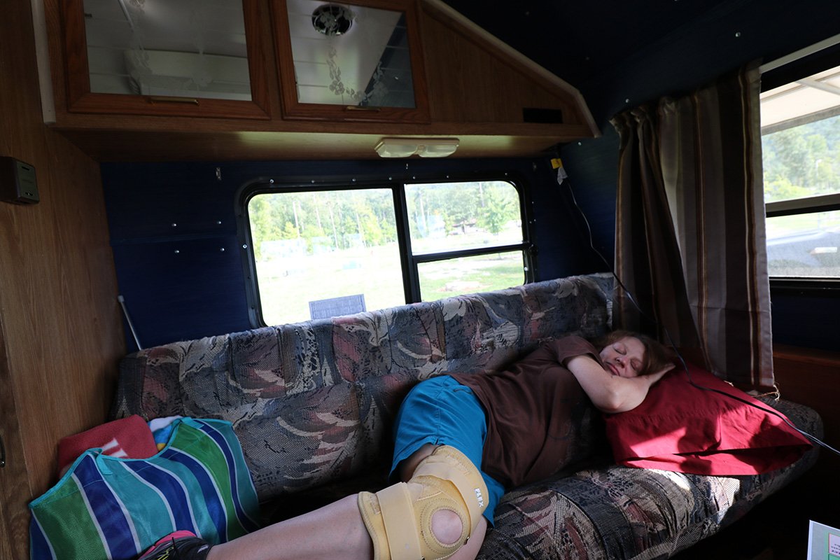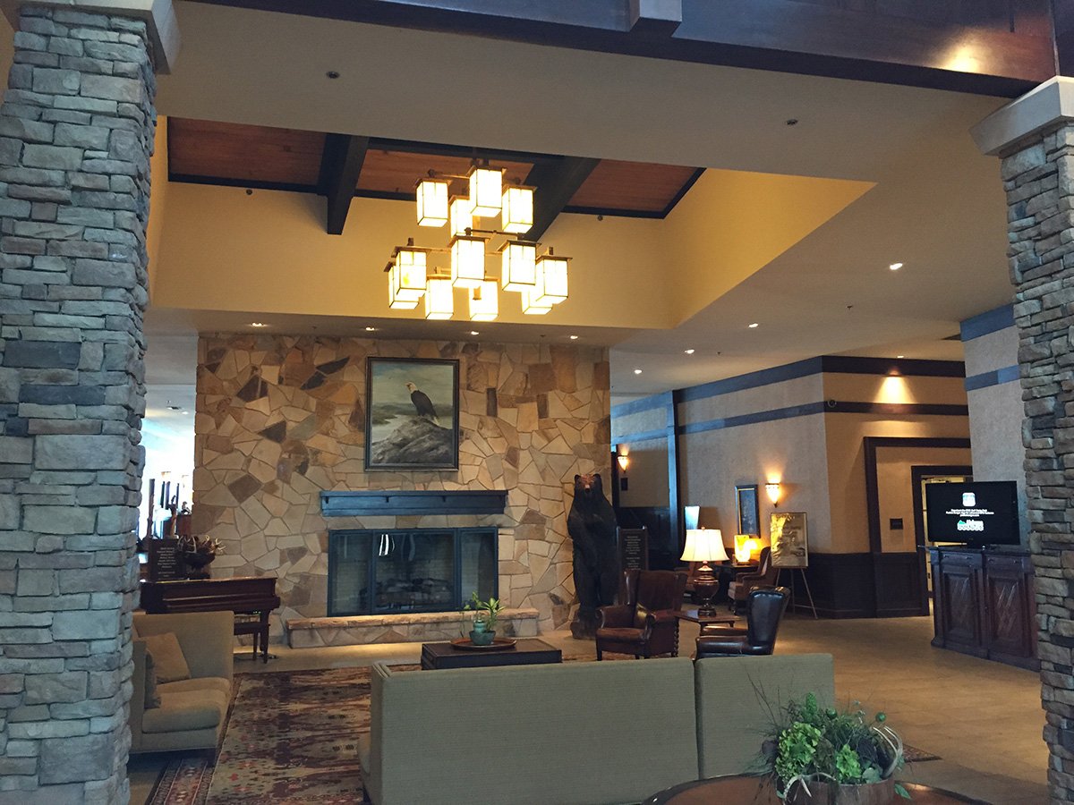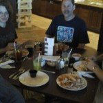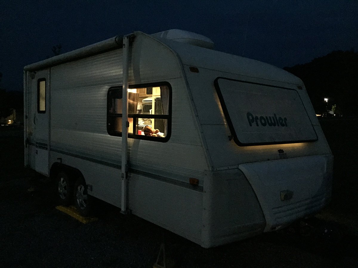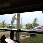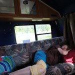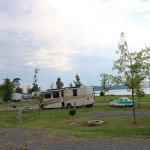 We headed back to the campgrounds to finish getting setup for the night and we saw a really cool RV with a small blue car attached. The funny thing is, this is the same RV/car I saw just a week ago in Pelham while I was checking out a local Good Sams camping store. Sure luck I caught it there and weird we’d see it again here (that’s some kind of good luck, eh?). Our new neighbor/friends were outside so I asked him if they’ve ever been to the lodge for the seafood buffet dinner and he said it was good. 15 minutes later, he knocked on our door to see if we were going and they’d meet us there. So, off to dinner. It was very good, all you can eat crab legs, fried catfish, cold jumbo shrimp and sides… we put a hurting on them to be sure and met some nice people and shared some stories and tips about camping we surely need. Found out, they were from my home town of Detroit as well – how cool is that. Sleeping in our new home-away-from-home for the first night wasn’t too bad. Its a bit small (ok, REAL small), especially for my 6’3″ self – but we managed and it was cozier than I thought it would be.