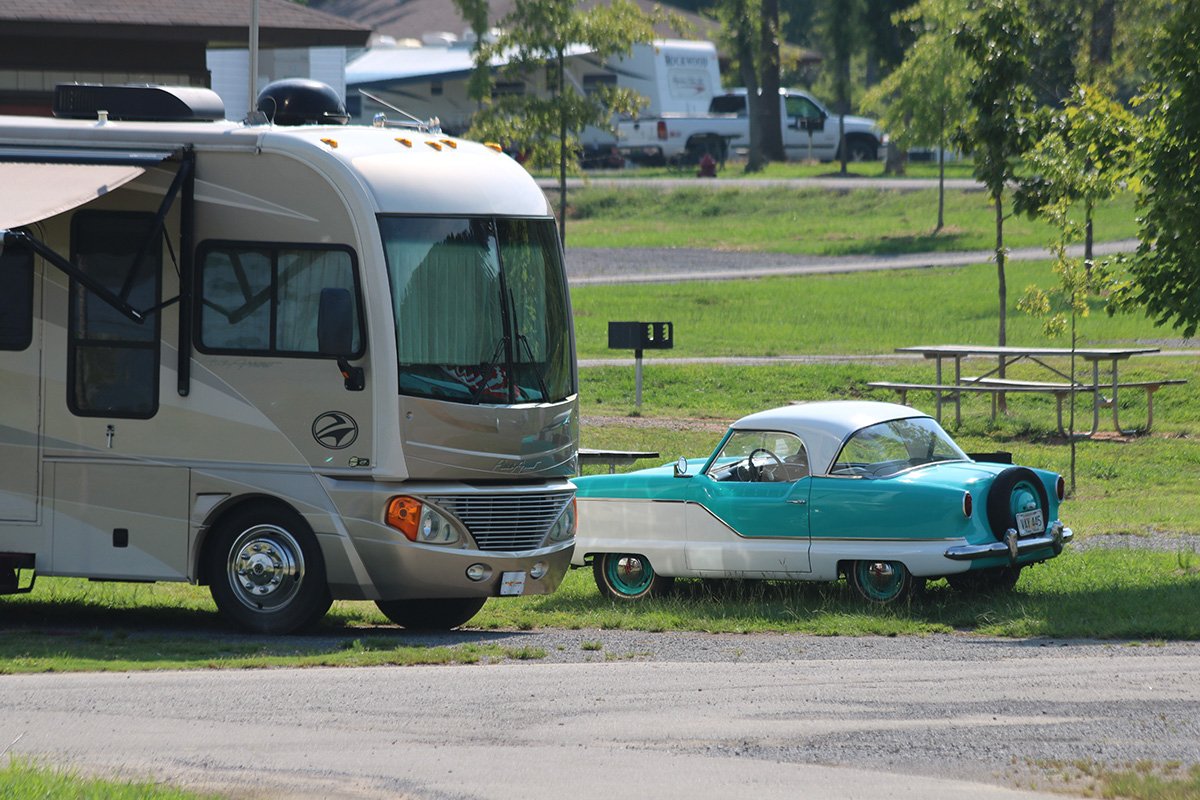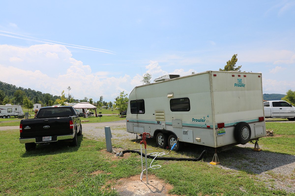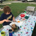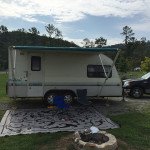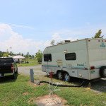 We stopped off at an antique store on the way – one of those consignment ones. Looked small on the outside, but had a few neat things. Arrived at the campground around 11:30am, there was not many campers yet – it was a Friday and back to school, so I’d say less than 1/5 full. It holds 366 camping spots – all with electric and water and most with sewer – we opted for the sewer. Our camper has small holding tanks, so for $2 more per day – why not?! We backed into our spot, leveled it out, made all the connections and unloaded the supplies… all in under an hour – not bad for our first go. Oh, and as you’ll see in the first gallery below, Scooby has become our official mascot for the camping adventures. He holds a special meaning to Roberta and now he’ll add even more memories for me too.