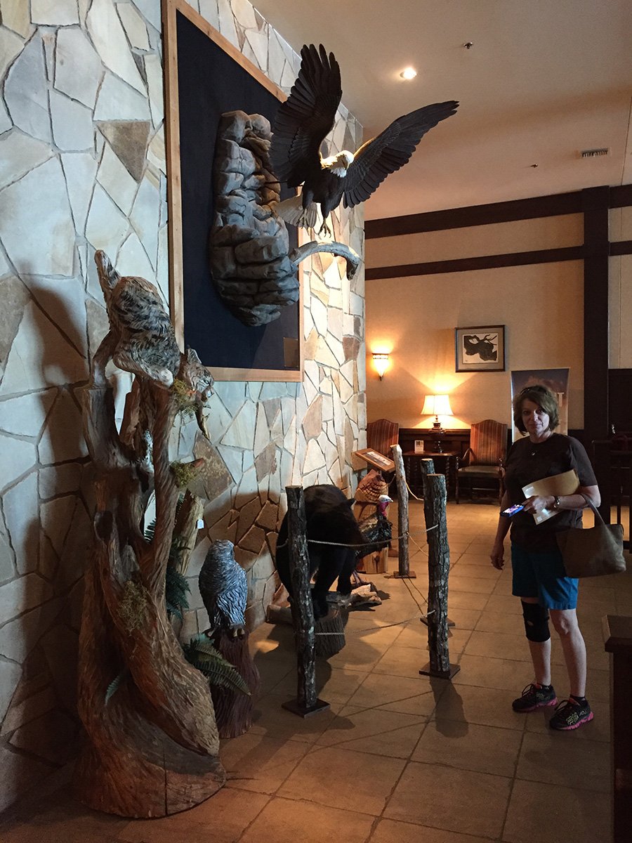 After we setup, we set out to the city of Guntersville. As we were pulling out, we met our neighbors – Michael and Kathleen from Decatur, AL – informing us kindly that the power was off. In case we planned on being gone all day and come back to no A/C or our fridge good ruined. Very nice people that we got to know pretty well over the next 2 days. So, we journeyed off to the big city and stopped off at a local bar: The Pointe at Val Monte. The local people were nice and told us about some place around town, including the restaurant at the lodge got good reviews.